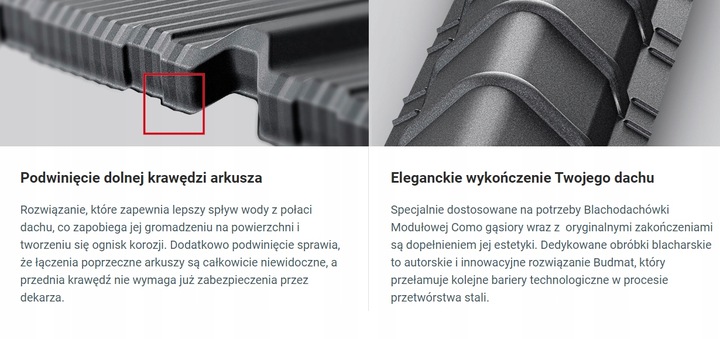 інноваційні рішення йдуть рука об руку з довговічністю і безпекою на довгі роки. Залежно від використовуваного покриття гарантія на плоску модульну металеву плиту Como становить від 30 до 50 років.