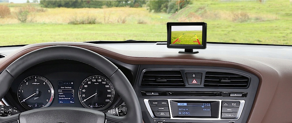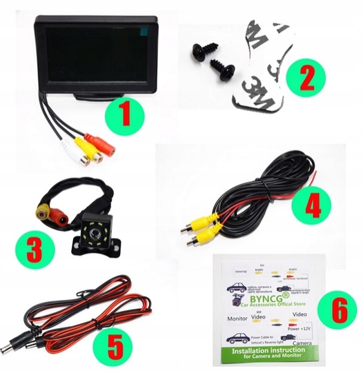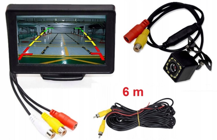 живлення монітора він підключається за допомогою доданого проводу до будь-якого джерела напруги від автомобільної установки. Рекомендується підключити плюс "після запалювання", так як монітор в режимі очікування споживає невеликий струм. На моніторі є два гніздових розʼєму RCA (cinch), під які ми підключаємо відеосигнал.