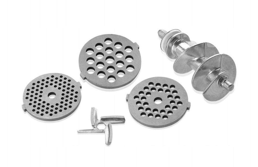 У комплект також входять 3 тарілки для подрібнення на дрібні, середні і товсті шматочки, завдяки яким ви можете легко приготувати фрикадельки, гамбургери, шашлики, соус болоньєзе або традиційні фаршировані перці.