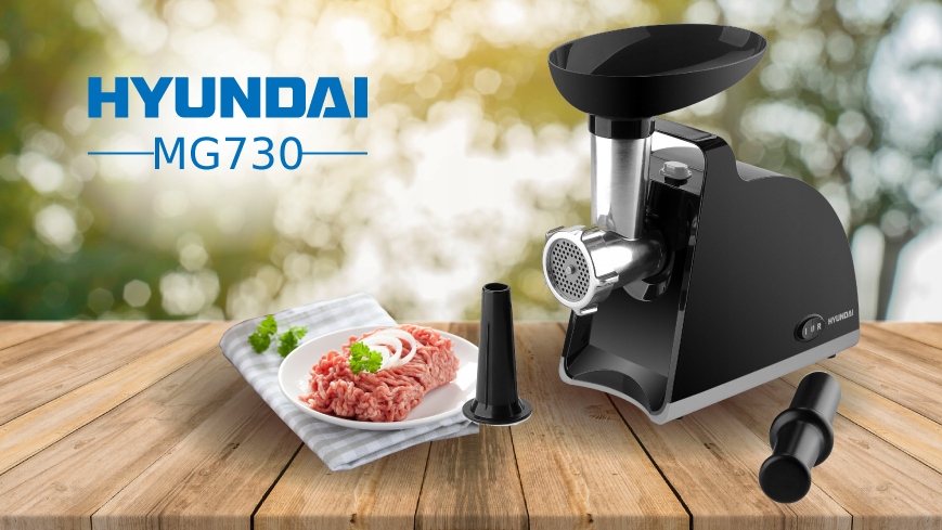 простий і практичний помічник для будь-якого домашнього господарства, яке любить різноманітність, різноманітне харчування, хороша якість домашньої і традиційної їжі. З мʼясорубкою Hyundai MG730 ви приготуєте мʼясо для щепів, гамбургерів, фаршированих котлет, шашликів, фаршированого мʼяса і мʼясних кульок або соусу болоньєзе і традиційних перців.