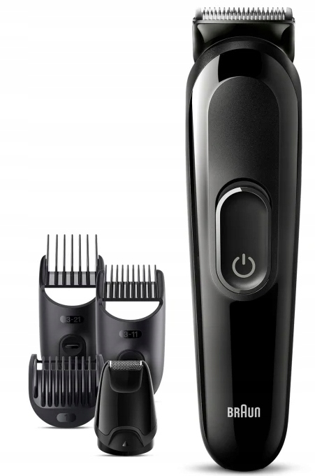 додатковий опис : поголіть обличчя, бороду і голову за допомогою універсальної машинки для стрижки волосся і електричної бритви Braun Series 3. Набір для гоління 6-в-1, призначений для бороди, волосся, деталей і багато чого іншого. З надзвичайно гострими лезами та 50-хвилинною автономністю. Комплектація: 1 чоловічий тример для бороди з пластиковою головкою в комплекті 1 міні-бритва для бороди з фольги, 1 змінна гребінець для бороди (3-11 мм), 1 змінна гребінець для волосся (13-21 мм), 1 фіксована гребінець (1 мм), 1 фіксована гребінець (2 мм), 1 чистяча щітка. Оснащений миються головками і гребенями.