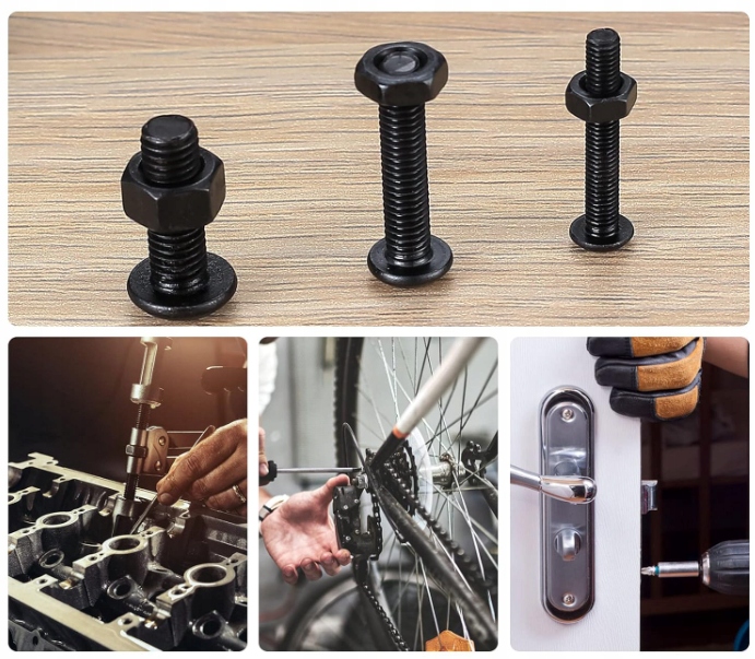 наші болти та гайки широко використовуються в побутовій та офісній техніці, комунікаційному обладнанні, суднобудуванні та інших галузях машинобудування. Ідеально підходить для ремонту меблів, автомобілів і мотоциклів, проектів DIY, а також в якості кріплення в промисловості і будівництві.