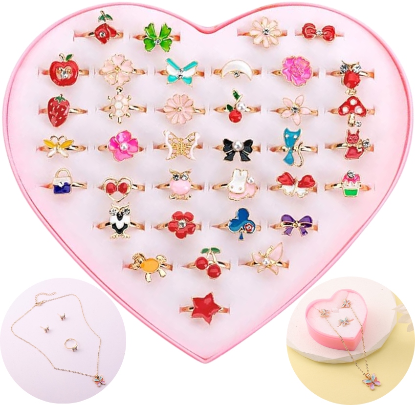 НАБІР КІЛЕЦЬ ДЛЯ ДІВЧАТОК, ЮВЕЛІРНІ ВИРОБИ, РЕГУЛЬОВАНІ В ЧОХЛІ + ЛАНЦЮЖОК