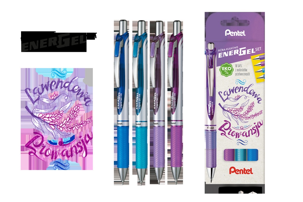 набір кулькових ручок Energel лавандовий Прованс Pentel 4шт.