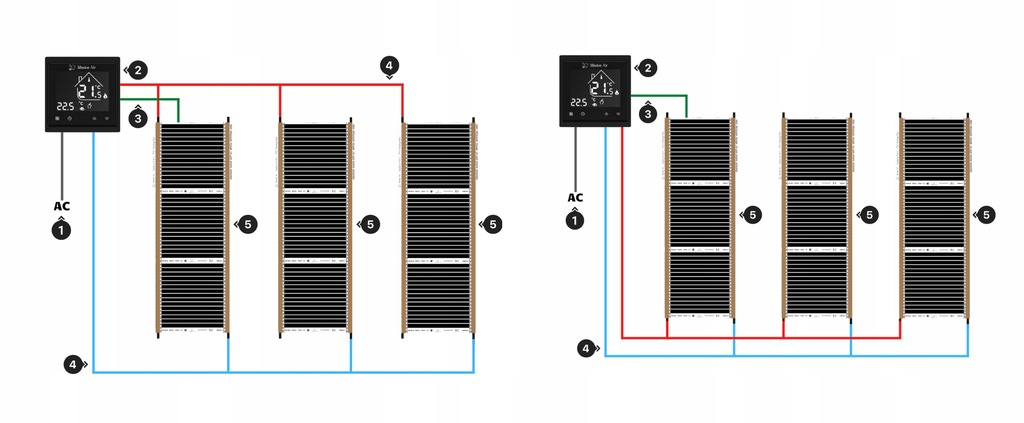 увага!! Повідомляємо, що монтажні зʼєднувачі, що входять в комплект, являють собою зʼєднувачі типу B, з розʼємом для силових кабелів, розташованим перпендикулярно напрямку укладання нагрівальної плівки.