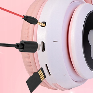 - світлодіодне підсвічування – зовнішній вигляд навушників нагадує вуха кошеня, які світяться білим кольором або RGB, тому вони завжди будуть вписуватися в стиль дитини. На боках вушних вкладишів є сліди котячих лап, які також підсвічуються.Тепер ваша дитина завжди буде видно на тротуарі, навіть після настання темряви!