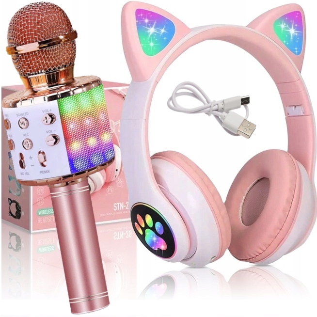 НАБІР НАВУШНИКІВ-ВКЛАДИШІВ ДЛЯ ДІТЕЙ КОТЯЧІ ВУХА + BLUETOOTH КАРАОКЕ МІКРОФОН