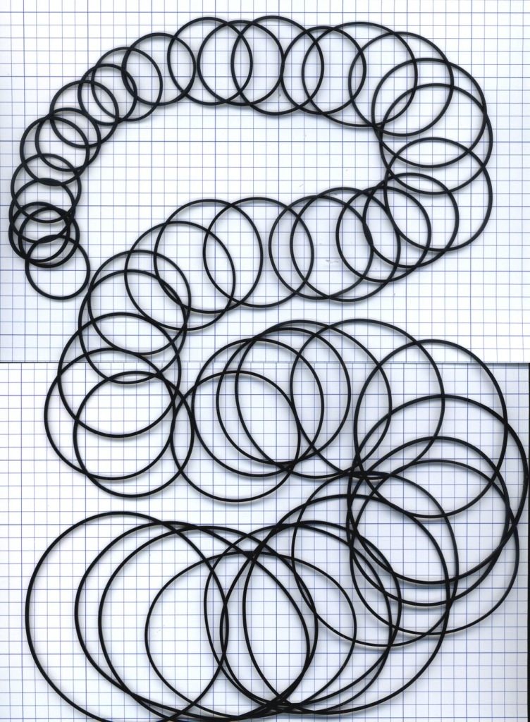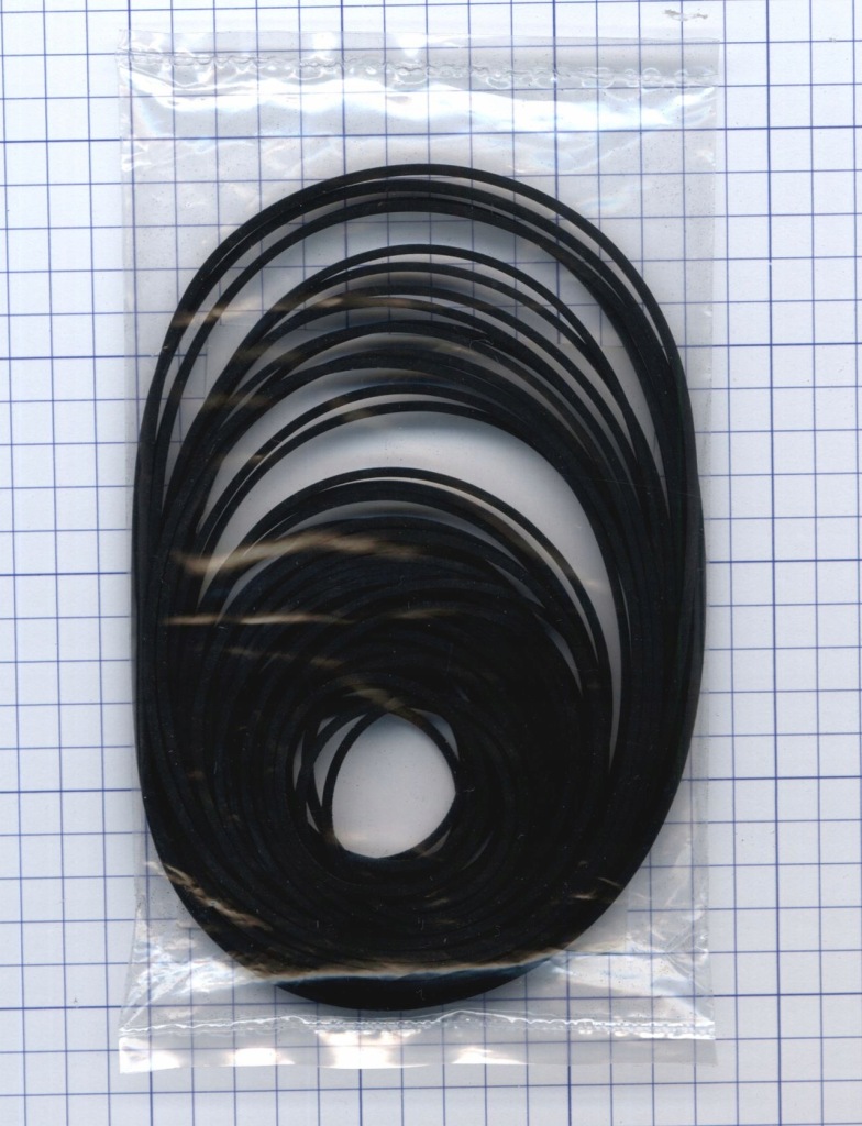 набір гумових приводних ременів (50 шт.) з квадратним перетином 1 мм x 1 мм, з різними діаметрами (периметрами, довжинами):