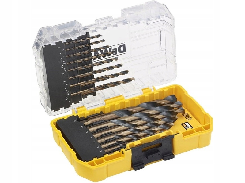набір свердел & # x142; DEWALT DT70729 призначений для свердління в конструкційній сталі, листовому металі, як r & # xF3; wне & # x17C; в дереві або пластику. Виготовлений з швидкорізальної сталі, а міцний zwężają cy sięіржіńзабезпечує витримуєł проśćі триваєł проśćдрильś#x142; a, зменшітьąc ризик зłаманія. Dzi & # x119;ki спеціальної заточуванням ko & # x144;c & # xF3;WKI Speed Tip не вимагайте & # x105; забивання в момент початку буріння. Від розміру 5,0 мм Свердлоła May & # x105; 3 p łaskieśCIAęcia на częśCIA хвостовика, uniemożLIJ & # x105;ce обертається si & # x119; свердло& # x142; A в свердлильному патроні під час роботи.