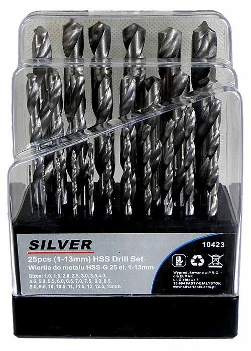 незамінний набір для професійного використання в компанії і домашній майстерні. Виготовлений з швидкорізальної сталі з символом HSS Свердла. Вони мають циліндричну ручку і посилену ріжучу кромку.