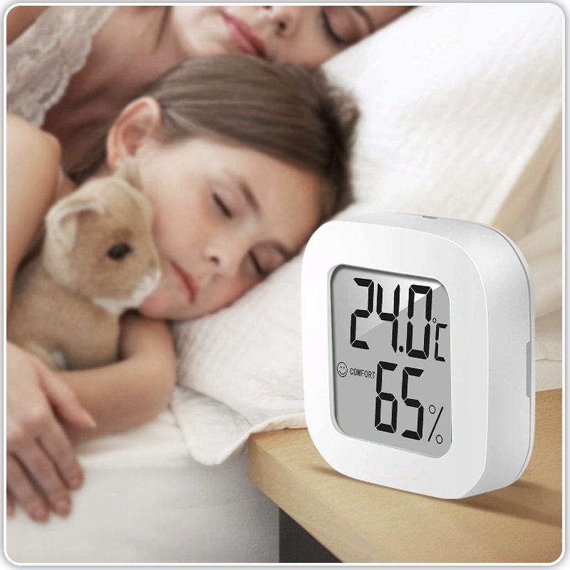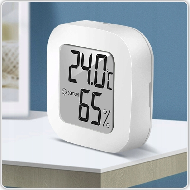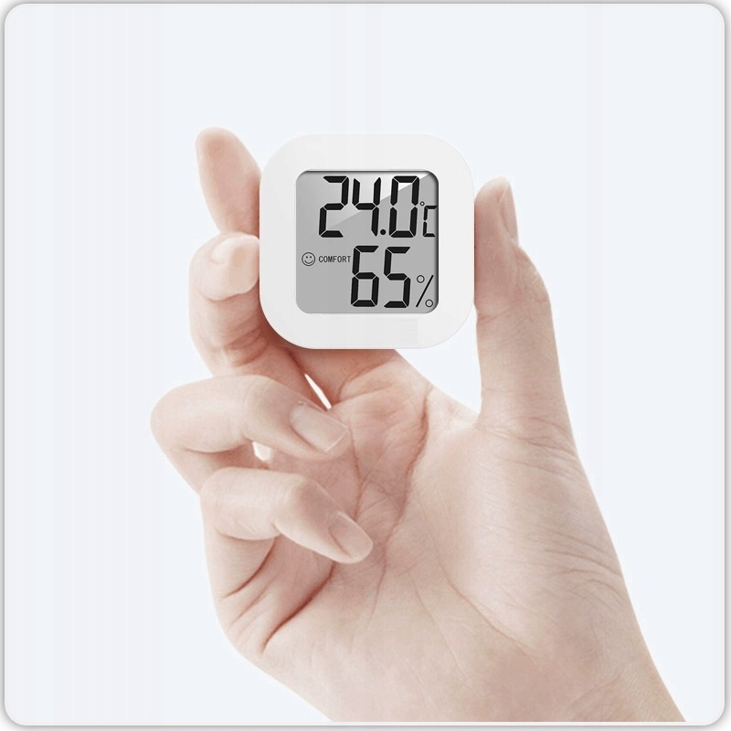 ⭐ вимірює температуру і вологість повітря . Крім того, за допомогою сумного або усміхненого смайлика показує якість повітря в кімнаті.