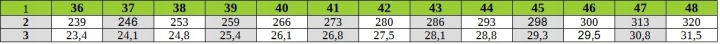 3-Рекомендована довжина стопи в СМ