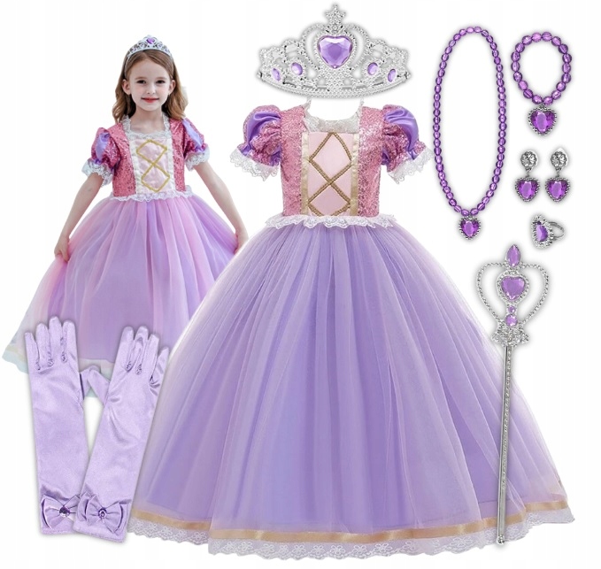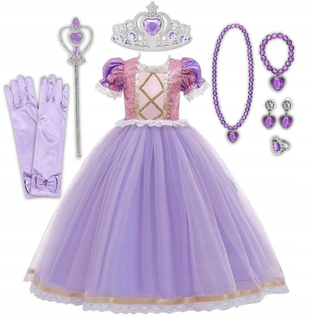 ⭐ ідеально підходить для маленьких дівчаток, особливо для шанувальниць принцеси Рапунцель , ретельно виконаних у відтінках фіолетового і рожевого. Наша пропозиція дозволяє кожній дівчинці відчути себе її улюбленою казковою героїнею. Цікавий костюм-це завжди подорож в чарівну країну, яка надовго запамʼятається.⭐