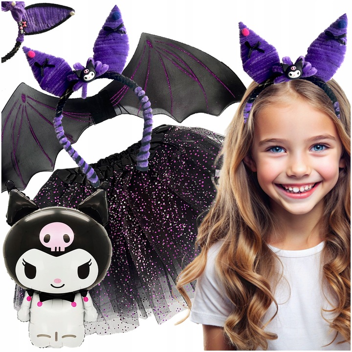 НАРЯД SANRIO KUROMI, КОСТЮМ ДЛЯ ВИПУСКНОГО ВЕЧОРА, КАРНАВАЛЬНИЙ НАРЯД, ПАЧКА, СВІТЛОДІОДНА ПОВ`ЯЗКА НА ГОЛОВУ +ПОВІТРЯНА КУЛЯ