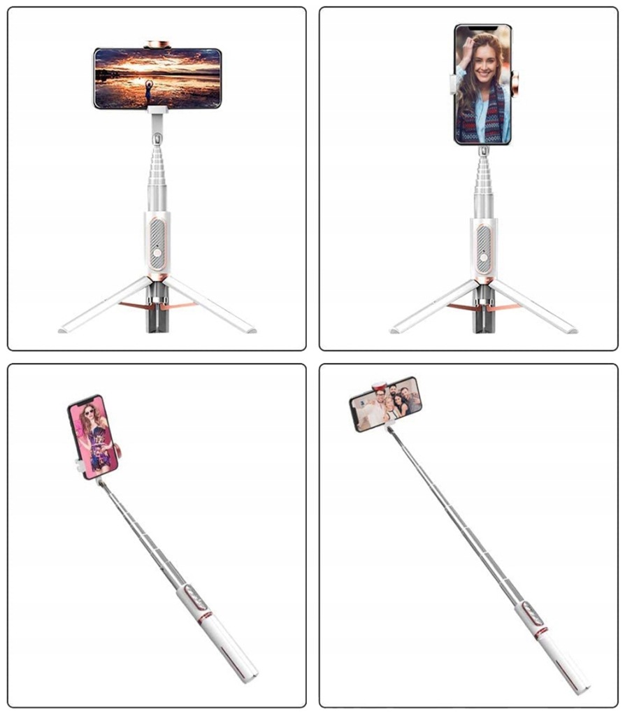- Робоча висота селфи-палиці: 19,5 см-72 см.