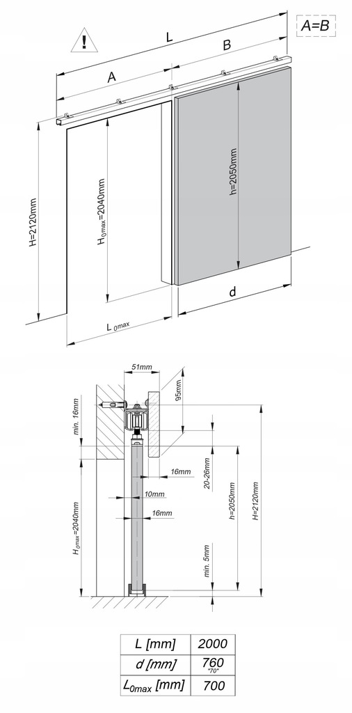 настінні розсувні двері WERMO PLUS-технічний креслення: