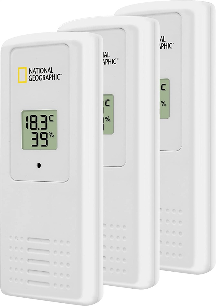- Термогігрометричний датчик (3 штуки в комплекті) для установки або підвішування. Частота передачі 433 МГц