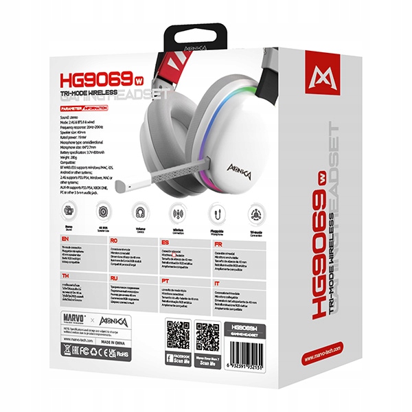 monka, елітний бренд Marvo, представляє своє останнє досягнення-ігрові навушники Monka HG9069W. поєднання інноваційного дизайну і перевірених технологічних рішень піднімає планку для вимогливих геймерів, пропонуючи не тільки відмінну якість звуку, але і зручність і універсальність у використанні.