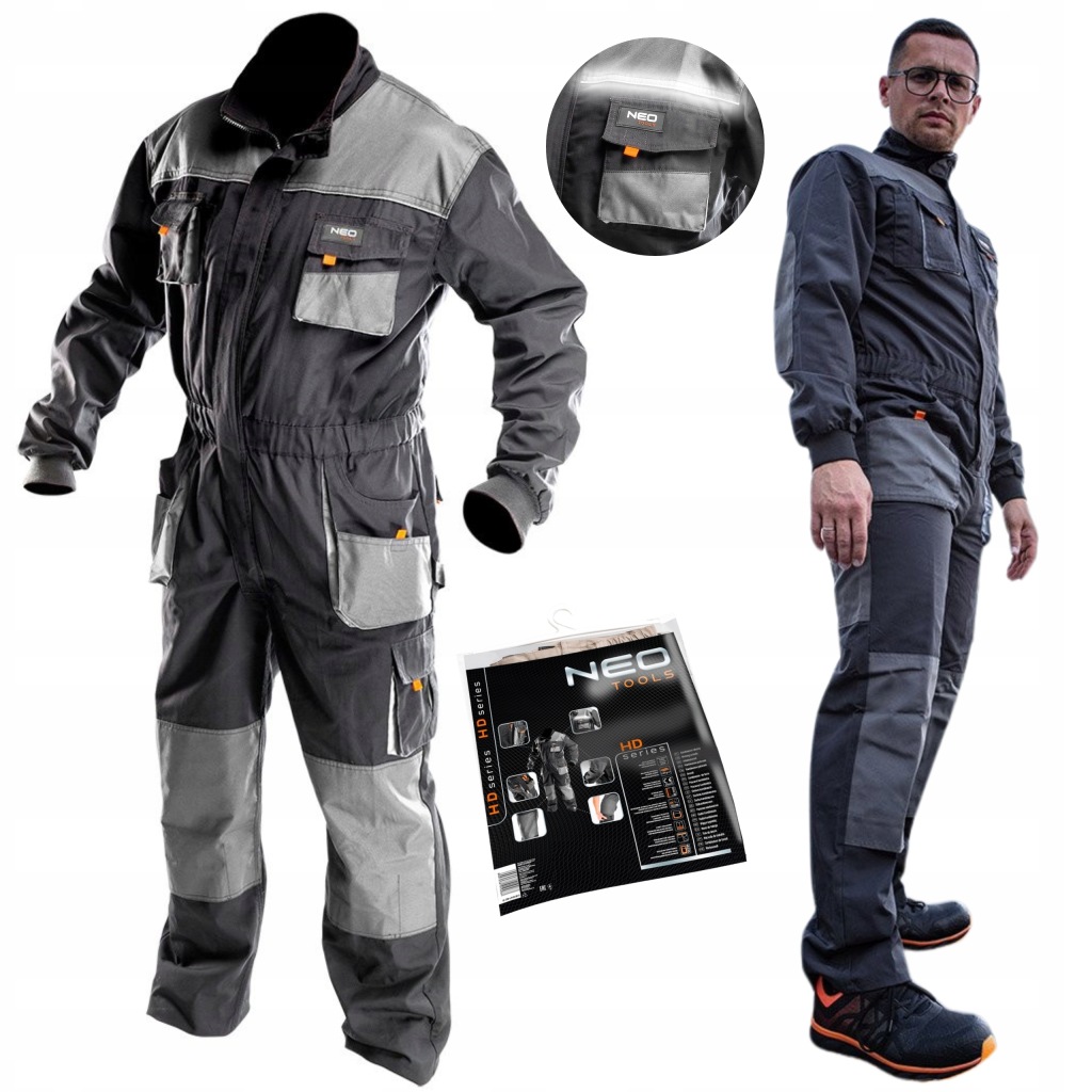 робочий костюм NEO (арт. 81-250) виготовлений з високоякісного матеріалу, посиленого в місцях, схильних до стирання. Потрійна прошита строчка, що збільшує довговічність зʼєднання і можливість вставки наколінників. Міцні кишені будуть зберігати необхідні інструменти, а завдяки цілісній конструкції навіть велике навантаження не викличе дискомфорту під час роботи. Штани відрізняються кишенею для смартфона-збільшеним в порівнянні з існуючими конструкціями, щоб вмістити моделі з більшою діагоналлю екрану. Гарантією якості є Європейський сертифікат і виконання відповідно до стандарту EN ISO 13688: 2013.бренд NEO відповідає очікуванням професіоналів.