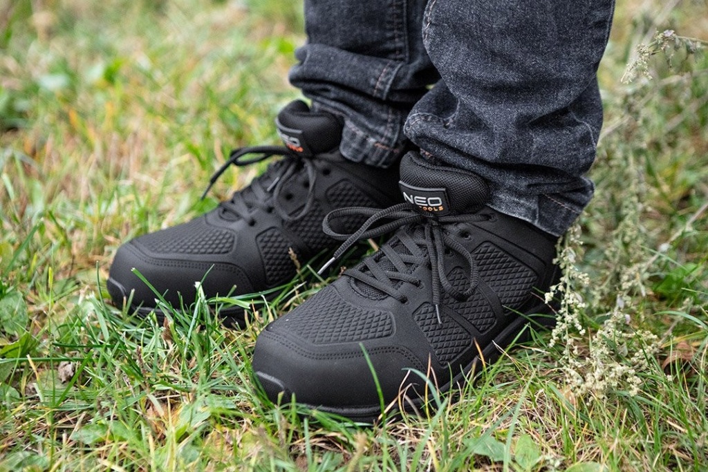 робоче взуття 82-156 NEO Класу S1 SRC є основним захистом під час роботи. Верх виготовлений з дихаючого матеріалу, покритого пластиковою сіткою. Нековзна підошва з піни EVA з гумовим покриттям забезпечує високий комфорт і ефективну амортизацію, гарантує безпеку і комфорт. Посилений пластиком носок і задня частина взуття і композитний носок захищають від механічних пошкоджень, а кевларова устілка захищає від проколів. Завдяки мʼякій обробці всередині взуття комфорт роботи залишається на високому рівні. Робочі напівчеревики мають численні підсилювачі і захист від стирання ,а також сертифікат CE, відповідність стандарту EN:ISO 20345. характеристики: взуття, виконана в категорії S1P SRC (SRC- стійкість до ковзання на керамічній підкладці, покритої розчином лаурилсульфату натрію (SLS) і на сталевій підкладці, покритої гліцерином); без металевих елементів; нековзна підошва з амортизуючою системою, стійка до стирання, масел, бензину та інших органічних розчинників вбудована пʼята; антиелектростатична устілка; цікавий, модний зовнішній вигляд; сертифікація ce на відповідність стандарту EN ISO 20345.