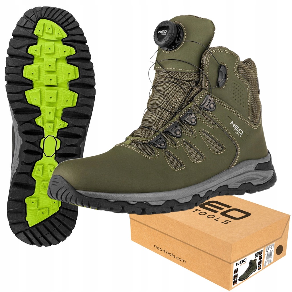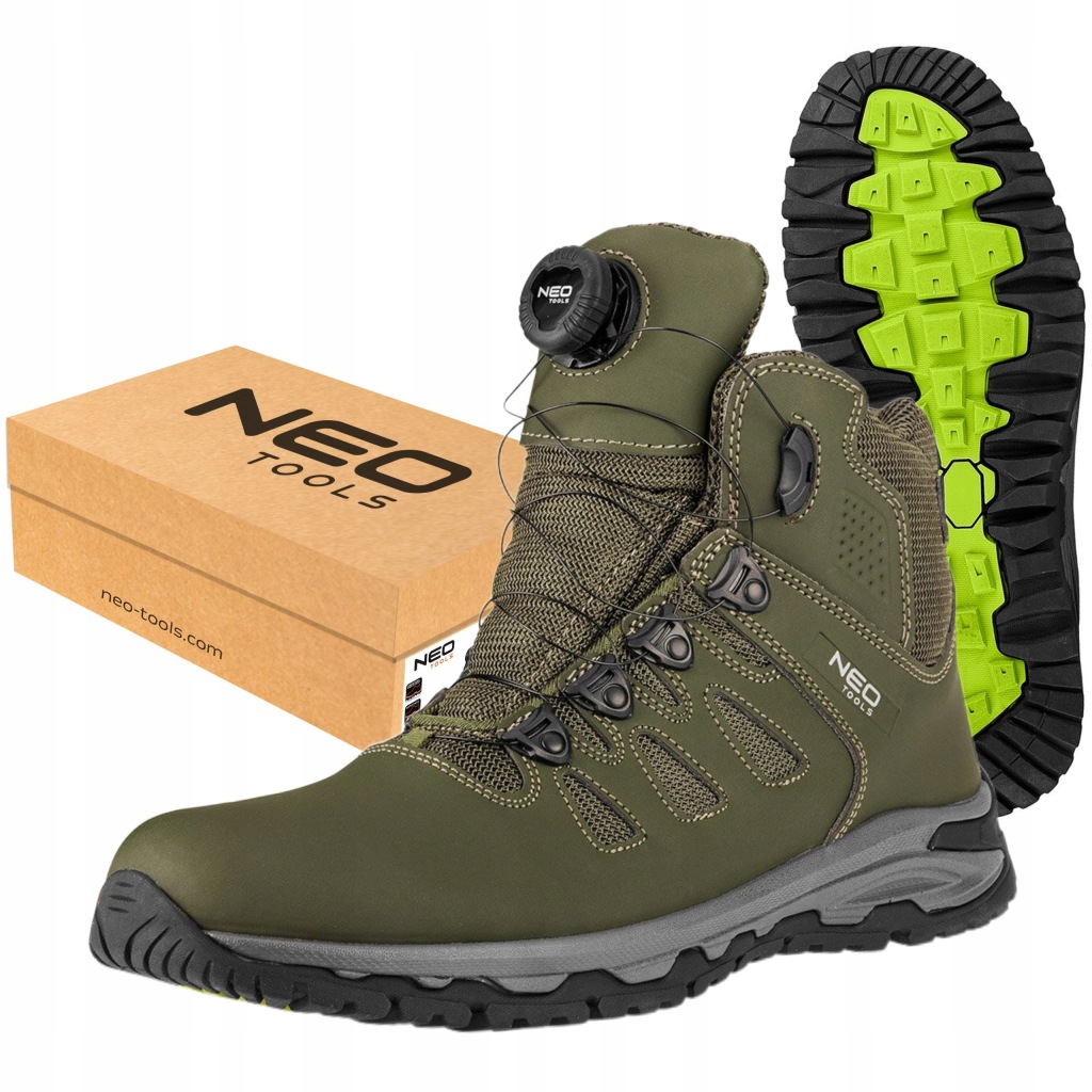 крім того, устілка з піни HI-POLY і вбудована пʼята забезпечують поглинання енергії в пʼяткової частини, підвищуючи комфорт використання. Взуття NEO TOOLS має антиелектростатичні властивості, а також стійкість до масел, бензину та інших органічних розчинників. Вони рекомендуються для лісових походів, гірських поїздок, а також для роботи на відкритому повітрі і в приміщенні, де не потрібно підйом, але правильне зчеплення з землею.