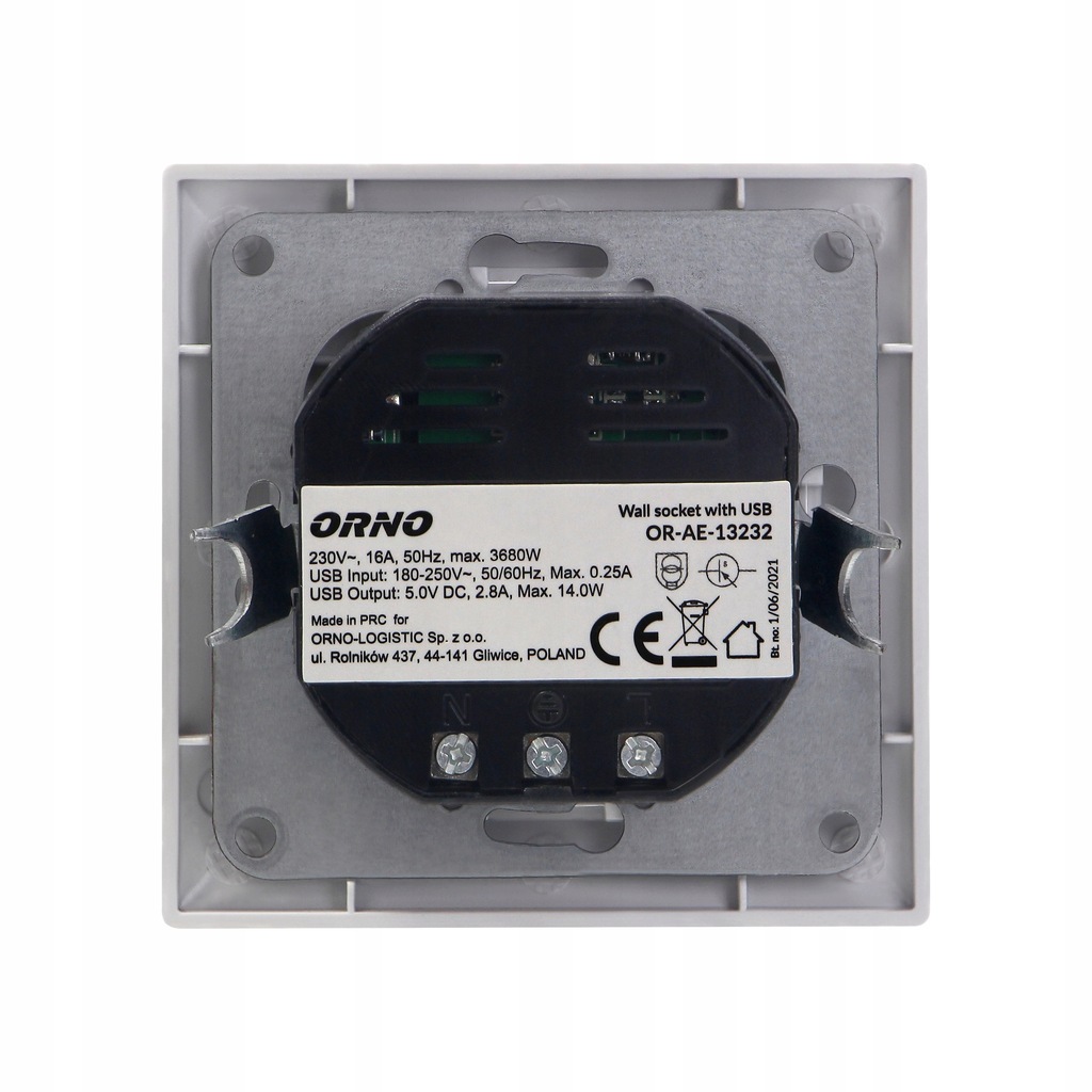 одиночна настінна розетка з зарядним пристроєм 2x USB A + USB C 2.8 A Білий ORNO