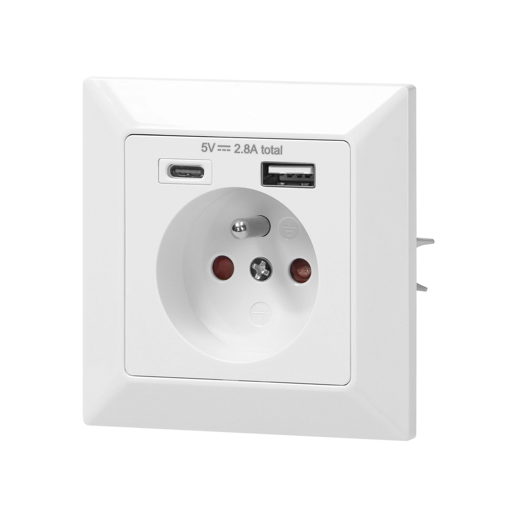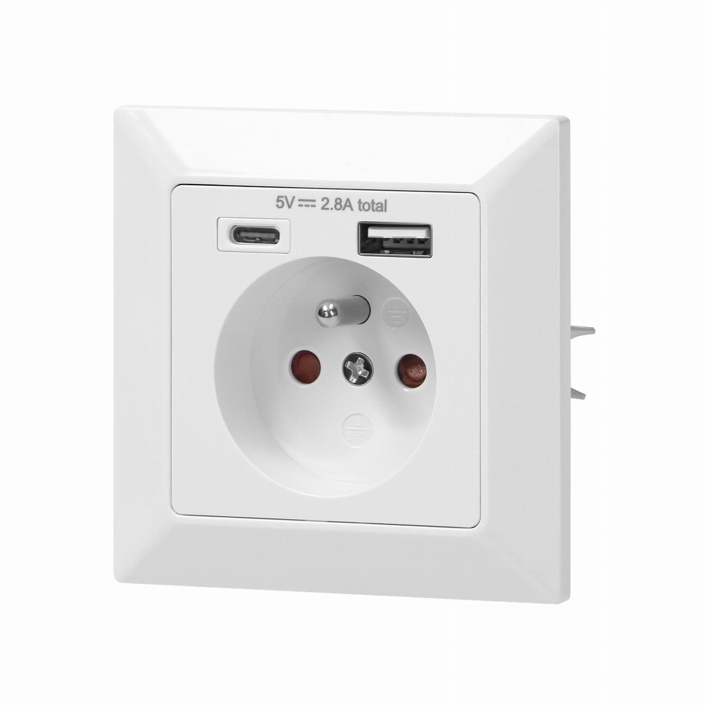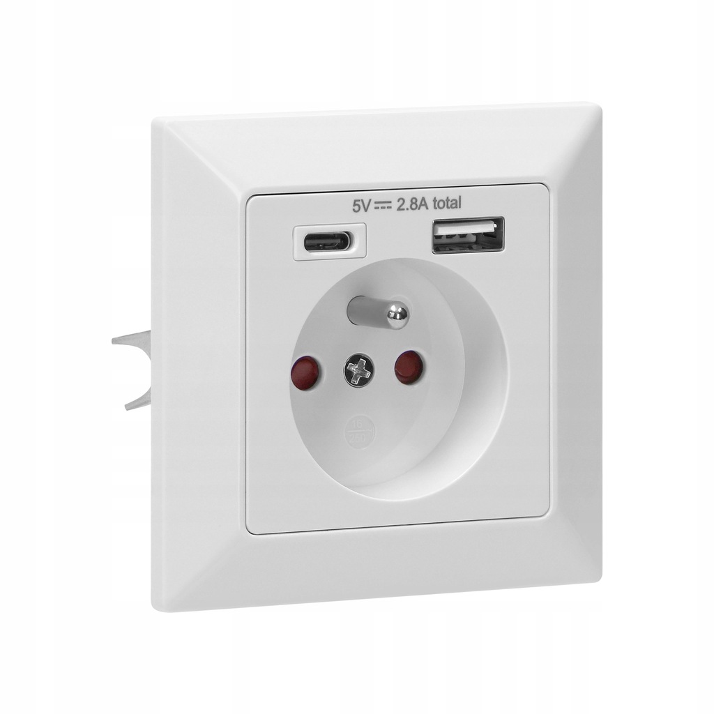 одиночна електрична розетка 2P + Z з додатковими портами зарядного пристрою USB (A + C). Після підключення відповідного USB-кабелю (не входить в комплект) він дозволяє заряджати більшість телефонів, планшетів і мобільних пристроїв на ринку, включаючи iPhone, iPad, iPod і т.д. гніздо виконано з естетичного пластику і має білу глянсову обробку. Установка в стандартну пущу fi 60 мм.