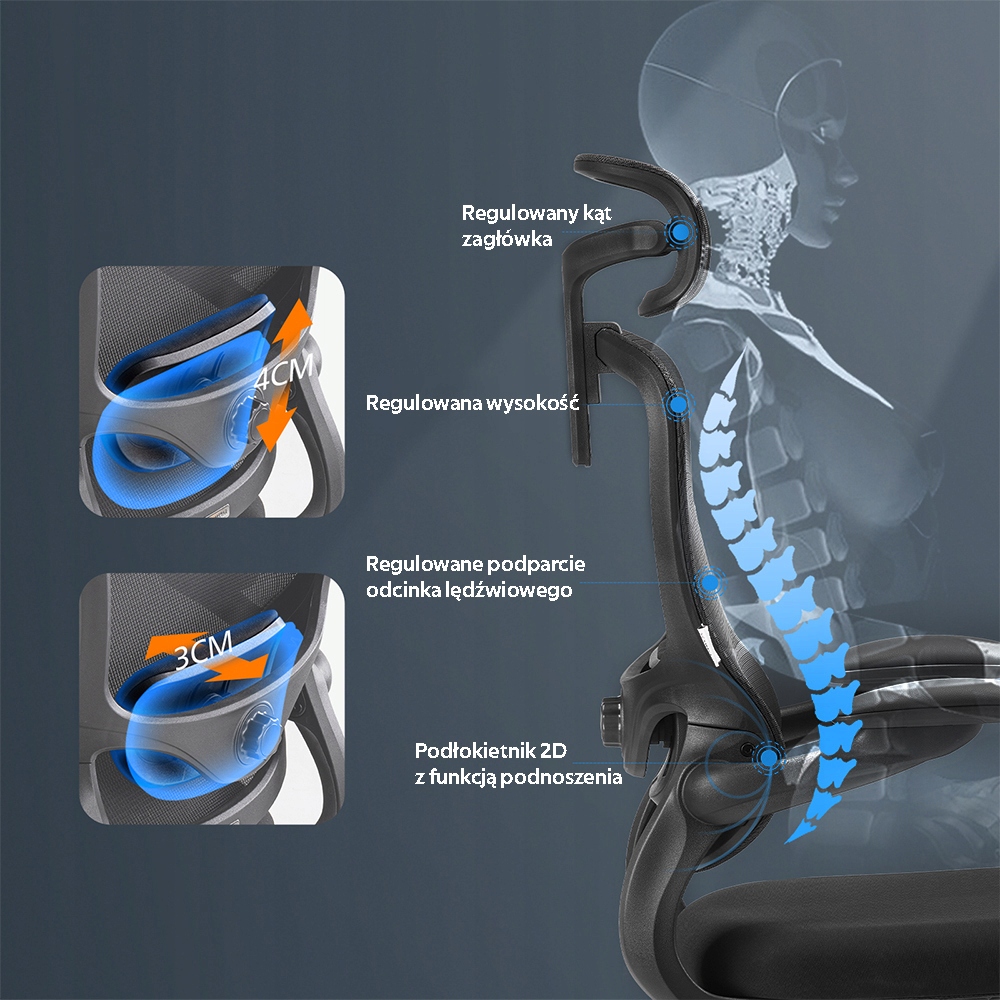 Chcesz️ хочете налаштувати кожен елемент крісла відповідно до ваших потреб?крісло Ergo Basic має широкий діапазон регулювання спинки і підлокітників, а також поперекової підтримки і підголівника в двох площинах і гарантує комфорт під час тривалої роботи і ідеальні умови для вашого хребта.