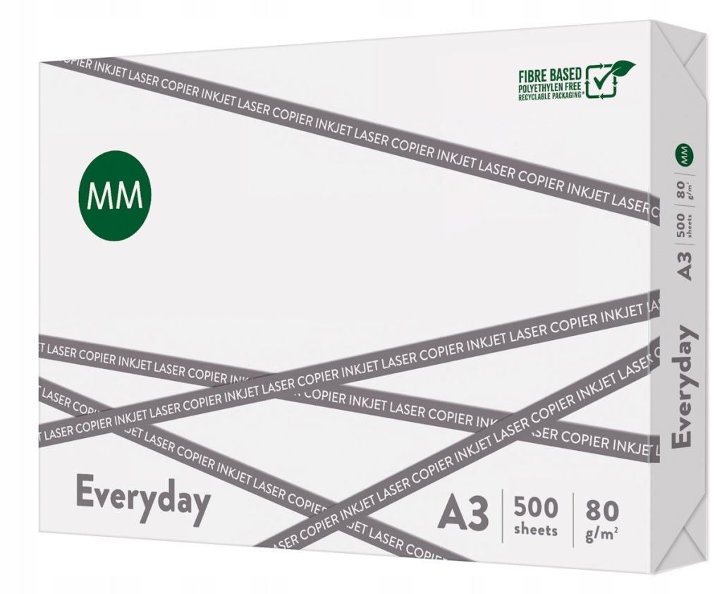 копіювальний папір EVERYDAY A3 клас C, 80 г / м2, 500 аркушів, CIE 146