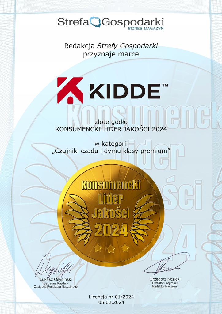 - сертифікати та допуски: відповідність стандарту PN-EN14604:2006 (EN14604: 2005) підтверджено незалежним уповноваженим дослідницьким органом, TÜV Rheinland, CE вулик> обладнання