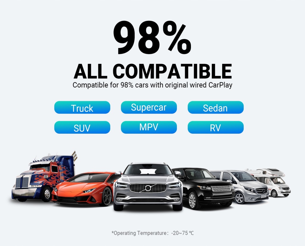 нові моделі оснащені бездротовою функцією CarPlay, і поєднання тренду підкорює світ. Наш Бездротовий адаптер OTTOCAST CarPlay забезпечує всі ваші потреби в бездротовому CarPlay за низькою ціною. Якщо ваш автомобіль поставляється з заводським підключенням до CarPlay, наш адаптер OTTOCAST підходить саме вам.
