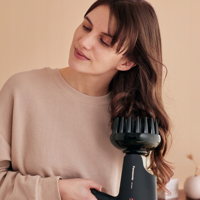 хочете попрощатися з пошкодженим волоссям і зміцнити його від коренів до кінчиків? Завдяки технологіям Panasonic Nanoe™ і Double Mineral фен EH-NA9J глибоко збагачує волосся. Також було доведено, що він зменшує завивку та усуває ознаки пошкодження волосся, а також зменшує потьмяніння та посічені кінчики. З дифузором тепер можна укладати волосся іншими способами.