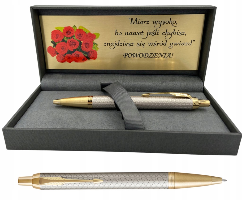 ручка PARKER IM PREMIUM WARM GREY GT в ексклюзивному футлярі Parker з табличкою.