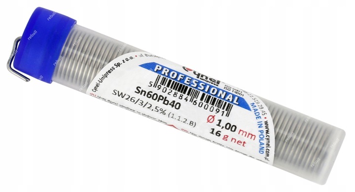 свинцевий сплав S-Sn60Pb40, виготовлений при першій виплавці олова і свинцю відповідно до стандарту PN EN 29453: 2000, в безперервному процесі лиття без доступу повітря, потім віджимається, що забезпечує усунення появи оксидів.