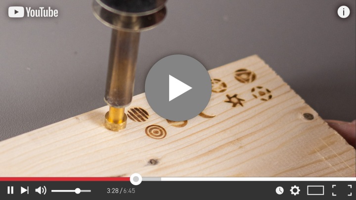 пальник паяльникдля прикраси предметів з дерева, шкіри або пробки за допомогою нагрітого наконечника, яким спалюються орнаменти, малюнки і т.д. завдяки використанню нагрівача потужністю до 60 Вт пристрій дуже швидко нагрівається до максимальної температури 275℃ випал дозволяє реалізувати безліч ідей. За допомогою пальника ви можете прикрасити багато предметів, такі як: кухонне начиння, іграшки, скрині, ящики, коробки, а також зробити самі візитні картки для дверей, закладки для книг, прикраси, різдвяні прикраси і навіть намалювати картини або портрети.більш просунуті і обдаровані люди можуть за допомогою пальника створювати справжні твори мистецтва .
