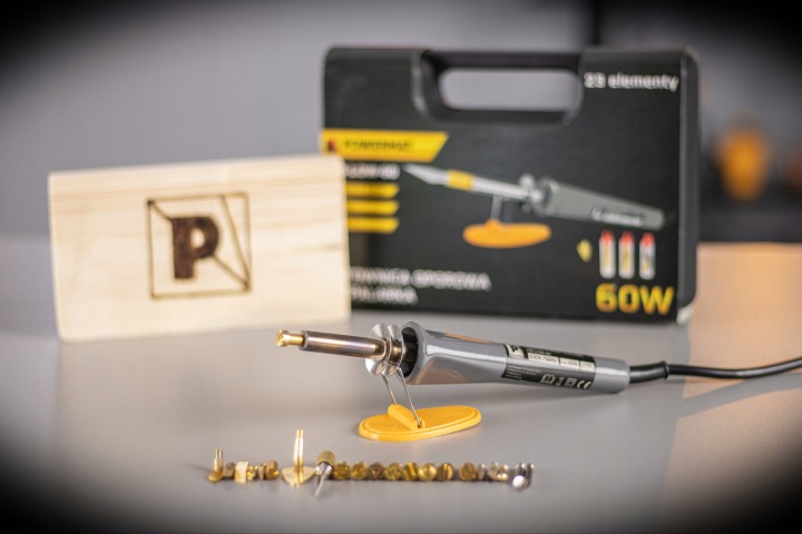 У комплект входять 22 наконечника, завдяки яким ми будемо спалювати різні візерунки на дереві, пробці або шкірі. Доданий ніж після нагрівання полегшить різання багатьох матеріалів. Завдяки використанню латуні для виготовлення наконечників вони дуже швидко нагріваються до робочої температури. У комплекті також додається підставка під колбу паяльника/теплового пістолета, завдяки їй ми покладемо пристрій без турбот.