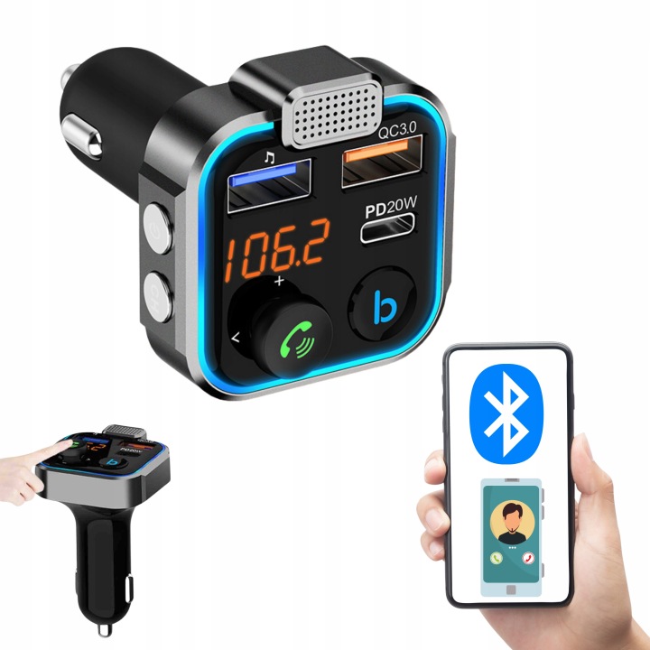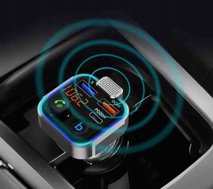 Transmiter має підсвітку RGB, яка дозволить вам додати сучасний штрих в інтерʼєр вашого автомобіля. пристрій пропонує функцію автоматичної зміни кольору або можливість вибору одного з 7 статичних відтінків.