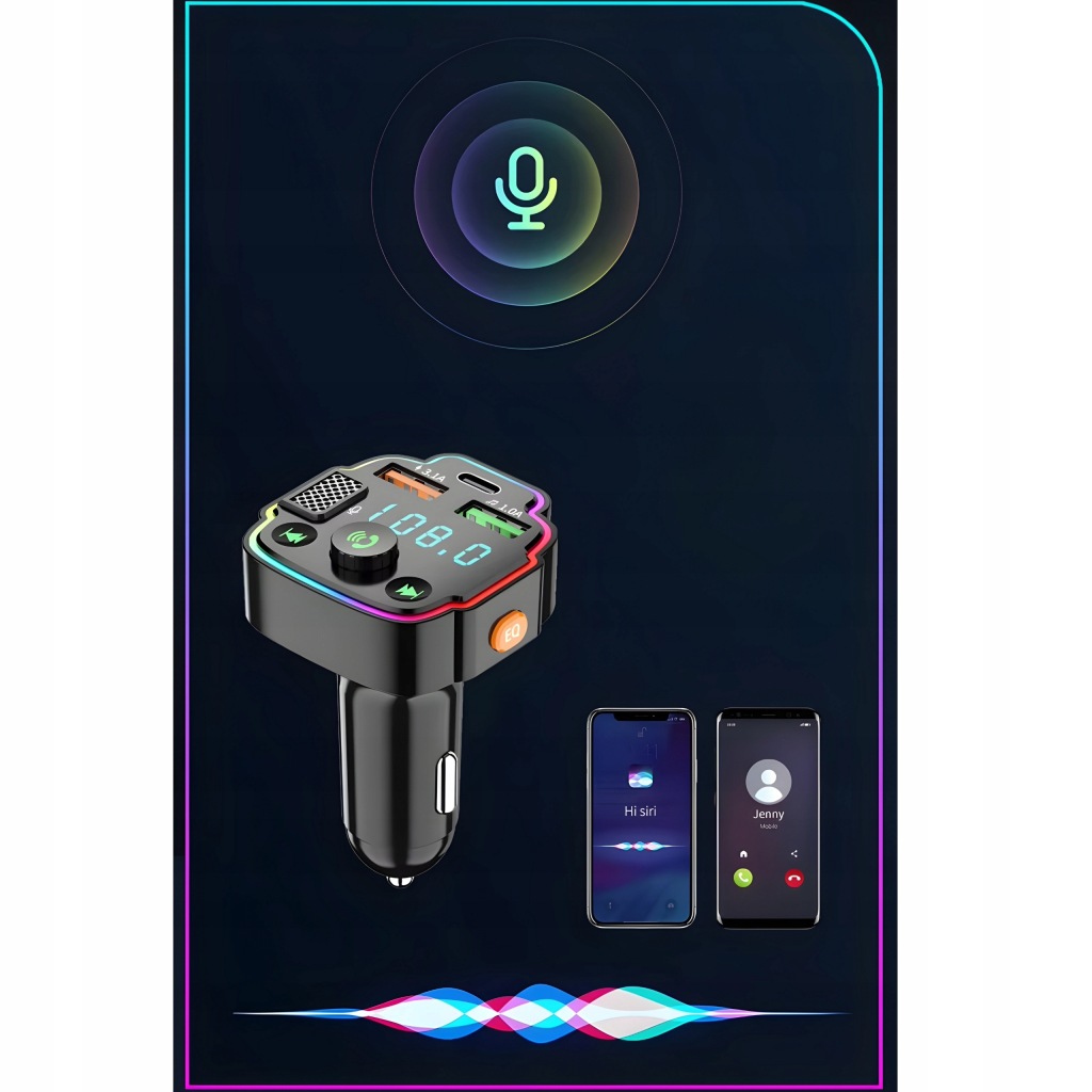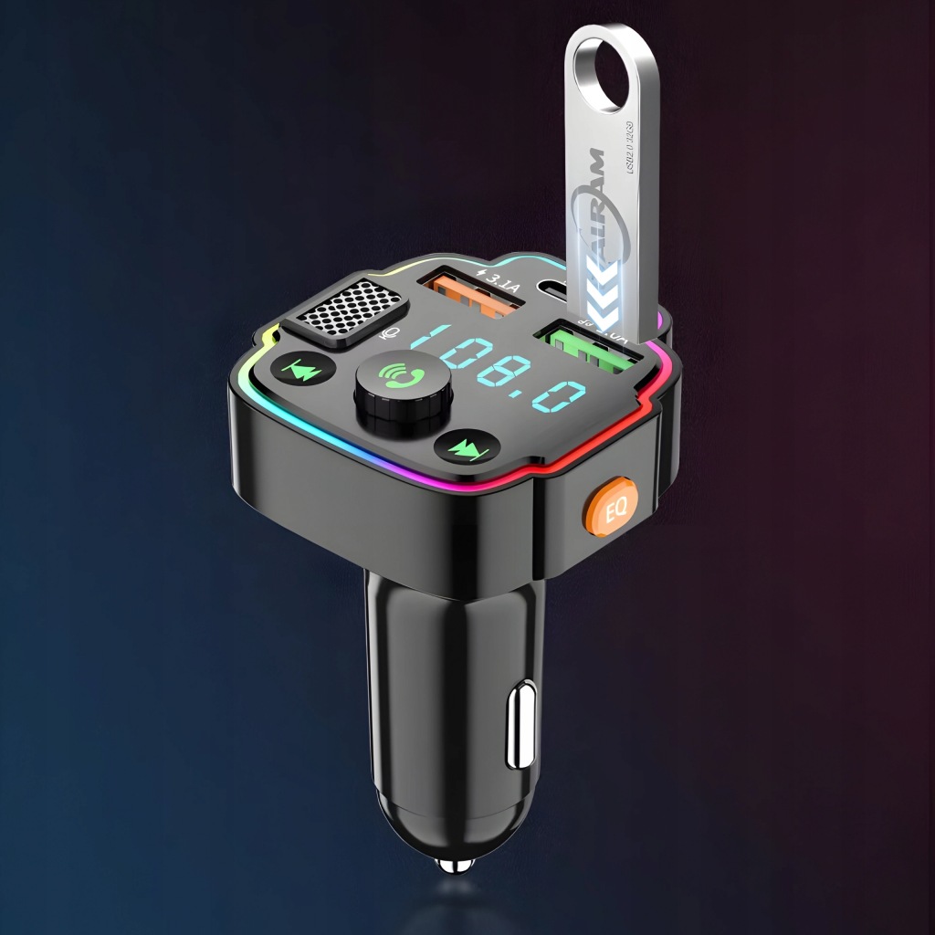 ПЕРЕДАВАЧ BLUETOOTH АУДІО FM MP3 BT ШВИДКИЙ ЗАРЯДНИЙ ПРИСТРІЙ 3X USB RGB QC 3.1 20W