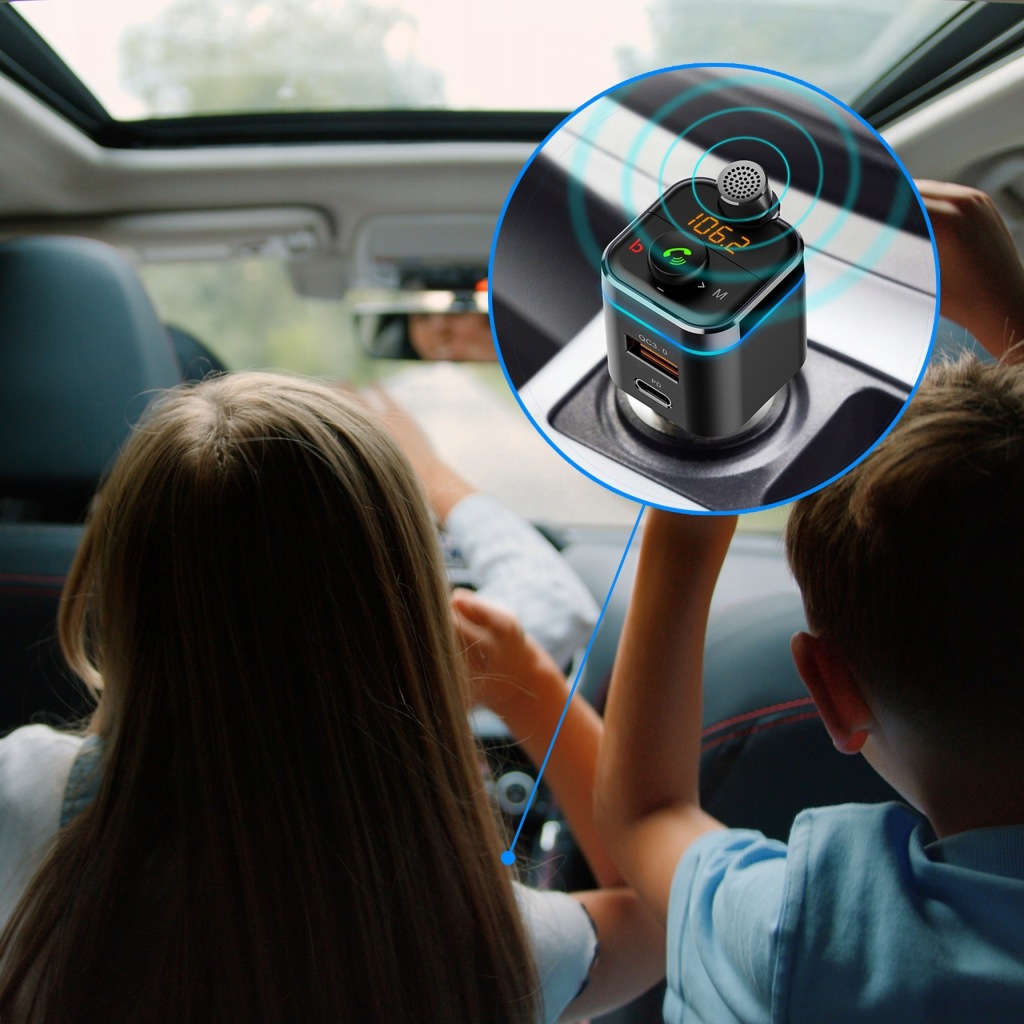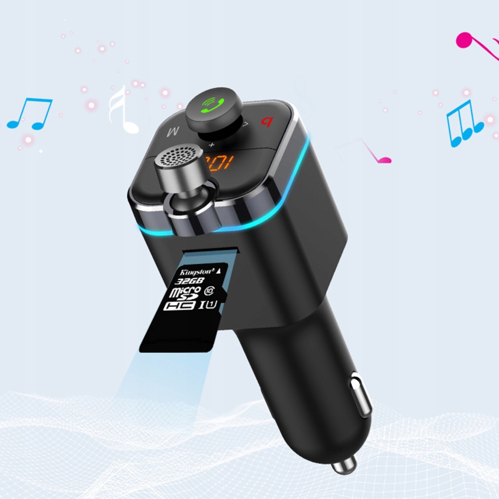 практичний і ретельно зроблений transmiter , це пристрій, який значно поліпшить комфорт Вашого життя. Ідеальний пристрій для людей, що знаходяться в постійному русі. Ідеально підходить для водіння автомобіля. Відмінно підходить для зарядки телефону або підтримки голосових дзвінків. Він має вбудований мікрофон іцифровий дисплей . Його основною перевагою є читання карт памʼяті TF/ micro SD. Функція FM Bluetooth дозволяє вільно спілкуватися. порт USB дозволить заряджати два пристрої одночасно.