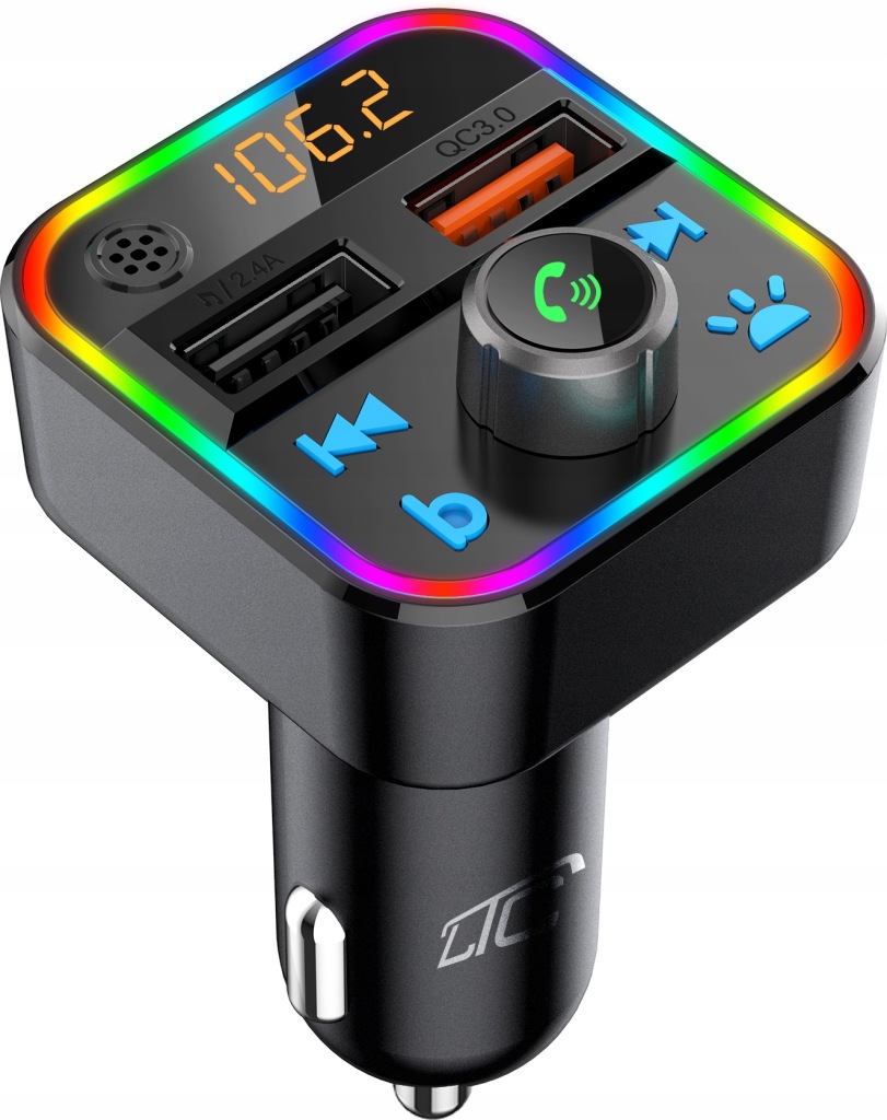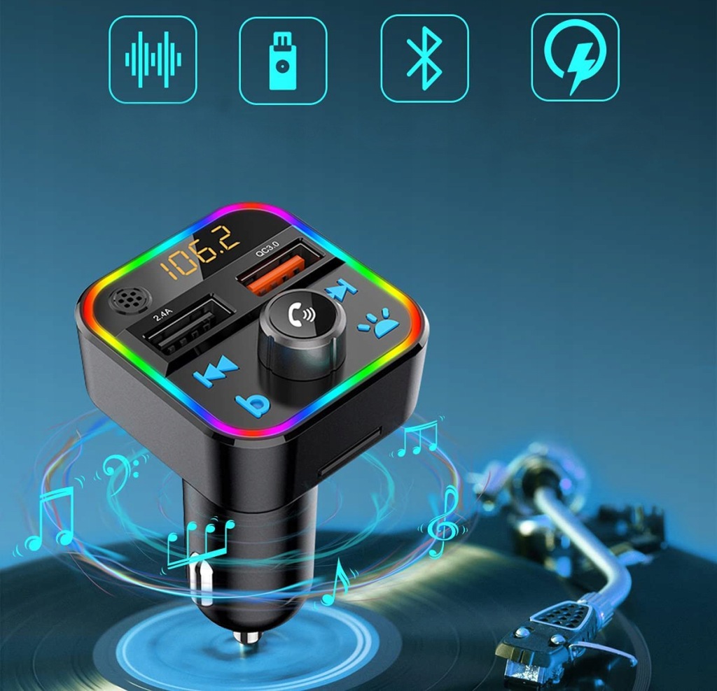 ПЕРЕДАВАЧ BLUETOOTH FM-ПЛЕЄР З МІКРОФОНОМ ШВИДКИЙ ЗАРЯДНИЙ ПРИСТРІЙ QC USB