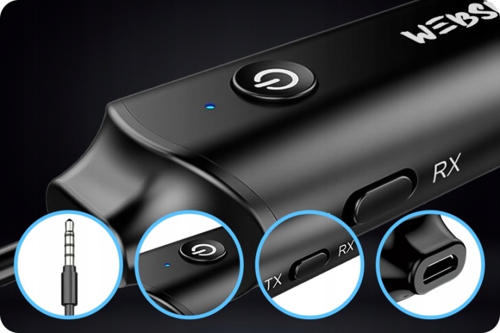 в режимі передавача просто підключіть Webski STICK до пристрою, з якого ви хочете транслювати звук (audio out), а потім на приймальному пристрої, наприклад, в навушниках включіть режим сполучення. Transmiter автоматично виявить їх і підключиться до них - без необхідності будь-якого інтерфейсу!
