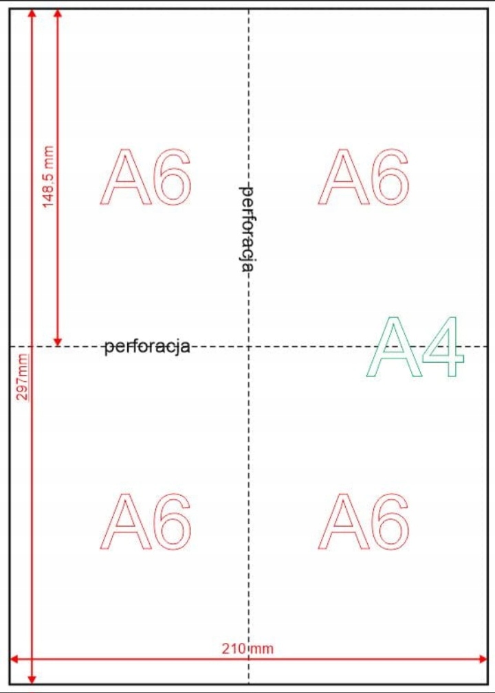 - аркуш формату А4 ділиться на 4 частини розміром до 148x105 мм, тобто до формату А6