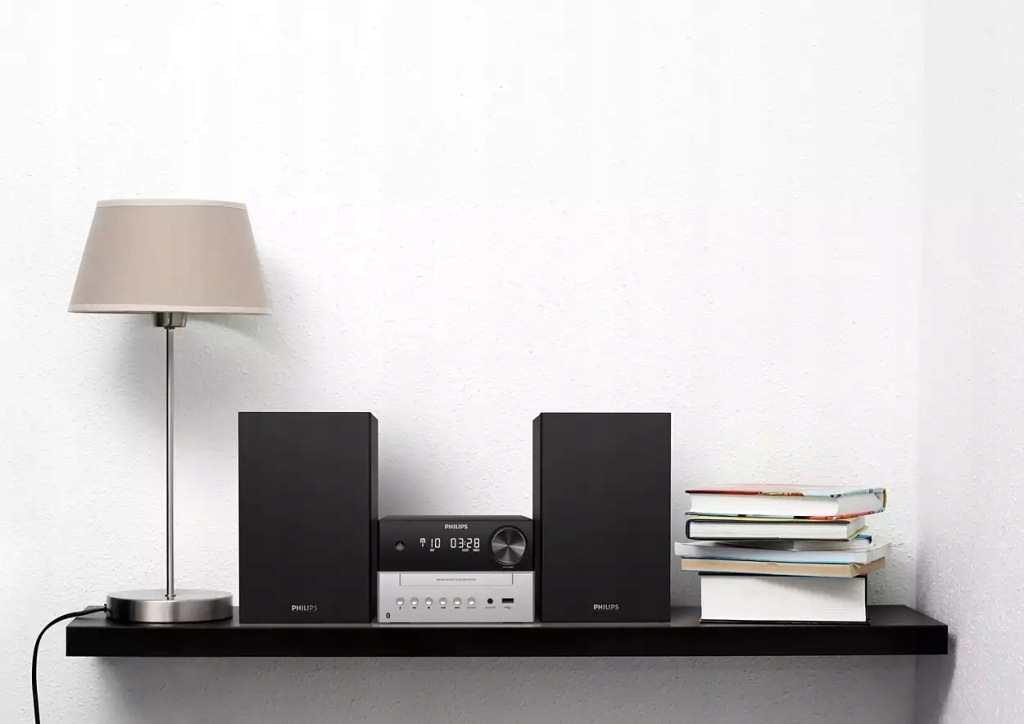 ця стильна мікросетка дозволить вам транслювати плейлист і багато іншого через Bluetooth, відтворювати компакт-диски і слухати FM-радіо. Цифровий радіотюнер з можливістю установки 10 станцій забезпечує чистий прийом, а програвач компакт-дисків підтримує MP3-диски і записані компакт-диски.