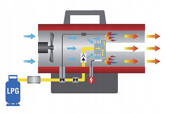 просто підключіть до газового балона пропан / бутан і потужність 230В і негайно опалюйте приміщення .