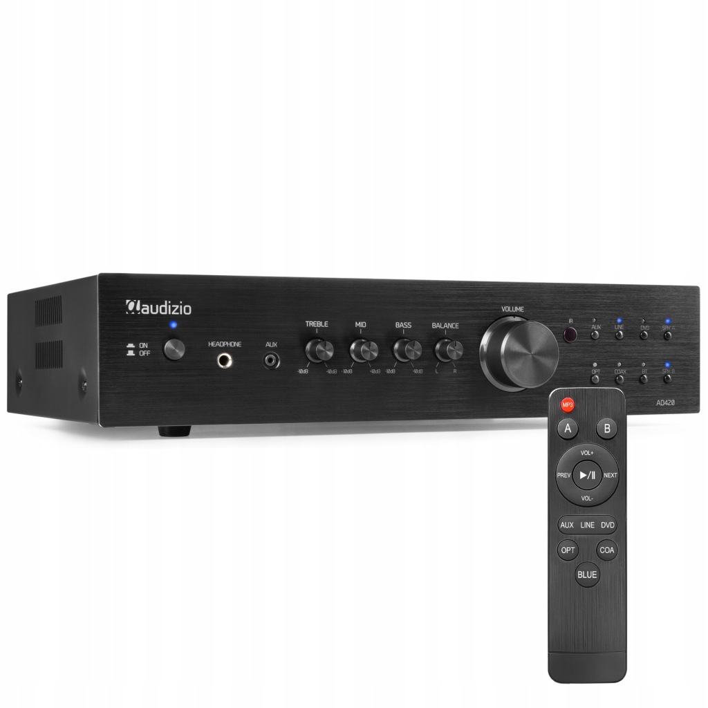 одним з найбільш важливих властивостей установки hi-fi є, звичайно, звук. І хоча остаточний звук залежить не тільки від підсилювача (але і від динаміків та/або запропонованого сигналу), хороший підсилювач, очевидно, дуже важливий. Audizio AD420B-це підсилювач класу A / B з дуже теплим і деталізованим звуком. Крім того, з точки зору потужності ви нічого не пропустите, при потужності не менше 4x100 Вт ви також можете насолоджуватися хорошою гучністю. У поєднанні з хорошим набором динаміків hi-fi AD420B гарантує задоволення. На передній панелі підсилювача ви можете легко вибрати набір динаміків, які ви хочете слухати (A, B або a / b)