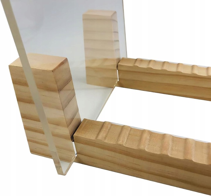 підставка виготовлена зі світлого дерева і оргскла.розміри [Д, Ш,в] 34 см, 19 см, 19 см.