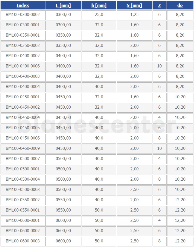 - довжина пильного диска (L [мм]):400,00