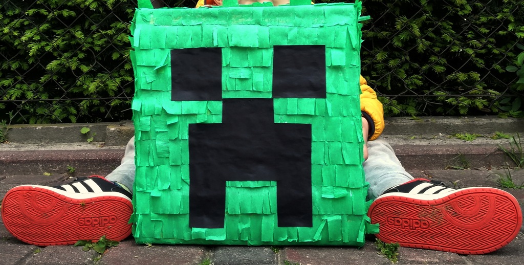 - щоб піньята мала кубічну форму, ми зробили її з 3-шарового гофрованого картону товщиною 3 мм, на картоні є виїмки, щоб діти могли дістатися до цукерок без застосування мега великої сили.