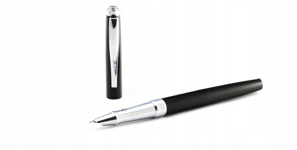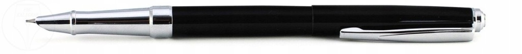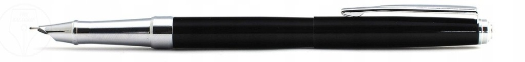унікальна модель пірʼяної ручки .Рекомендується для всіх, будь-якого віку .Перо незвичайне, сталеве, середньої товщини .Він звертає увагу своєю різницею .Корпус, ковпачок і затиск металеві .Передня частина, що утримує перо, зроблена з металу .Лак на корпусі і кришці глянсовий чорний .