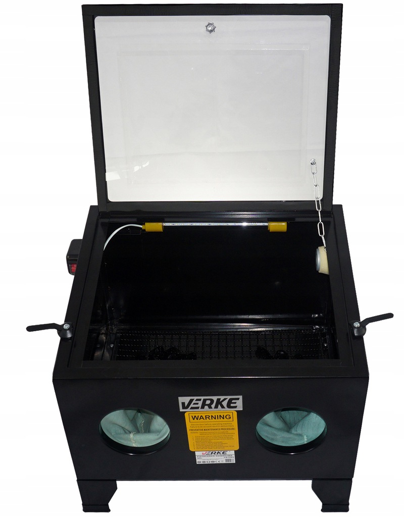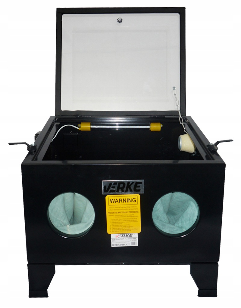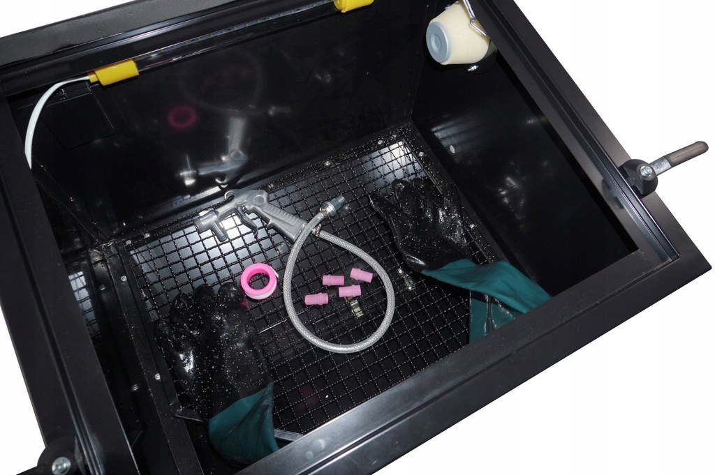 піскоструминний апарат використовується для точної та ефективної очистки. Ви ефективно очищаєте, видаляєте стару фарбу та іржу з різних предметів. З освітленою 90-літровою кабіною працювати легко і весело. Ідеально підходить для використання в майстернях, промисловості та гаражах.